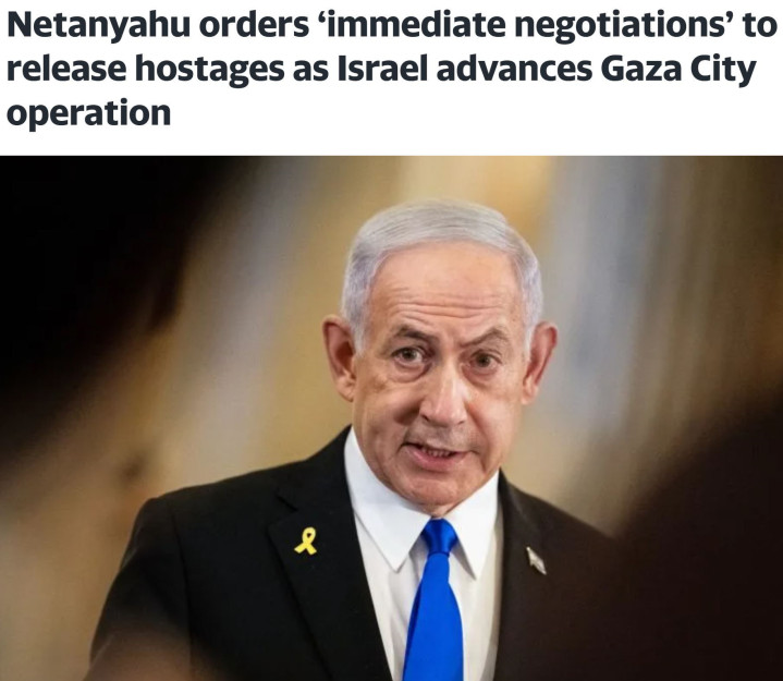 内塔尼亚胡一方面批准了军方的最新作战计划,与此同时,他又指示立即重启与哈马斯的谈判,以使所有被扣押人员获释并结束冲突。